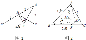 点评:本题考查由平面图形折成空间图形求其体积,求此三棱锥的高是解决问题的关键.本题还可以直接过点A作AE⊥BC交BC于E点,连接ME,证明AE⊥ME,即可说明AE⊥底面BCM.