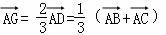 解:由向量加法的三角形法则及三角形重心的性质可得,![]()