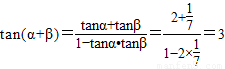 【答案】分析:(1)先求出两个锐角α,β的余弦,再利用同角三角函数的关系求出其正弦,进而利用商数关系得到两角的正切值,代入正切的和角公式求值.