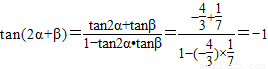(2)同(1)先用正切的和角公式求出2α+β的正切,再根据其正切值求2α+β的值,再确定其值前要先确定2α+β的取值范围.