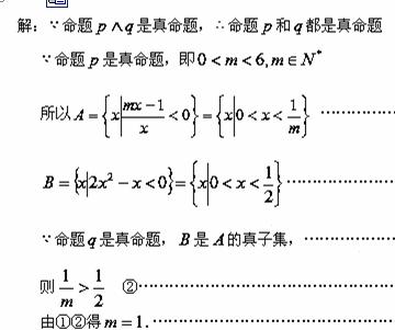 已知两个集合,;命题P:实数m为小于6的正整数,命题q:A是B成立的必要不充分条件,若命题是真命题,求实数m的值.
