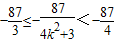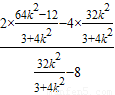 设A(x1,y1),B (x2,y2),则△=322k4-4(3+4k2)(64k2-12)>0
