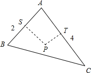 解:若P为△ABC的外心,过P作PS⊥AB,PT⊥AC垂足分别为S,T,