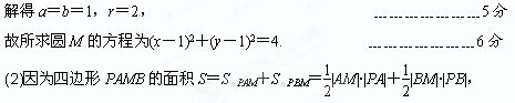 又|AM|=|BM|=2,|PA|=|PB|, 所以S=2|PA|, ﹍﹍﹍﹍﹍﹍﹍8分