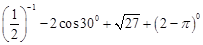 点评:解题的关键是对于特殊角的三角函数值,以及指数幂的运算性质的运用,属于基础题。