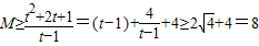 点评:本题考查基本不等式的应用,关键是对M变形,转化为基本不等式的问题.