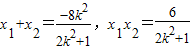 ,得(2k2+1)x2+8kx+6=0.
