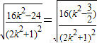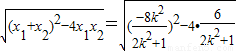 由△=64k2-4×6(2k2+1)>0,解得