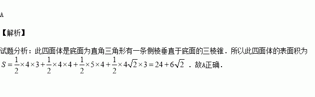 某四面体的三视图如图所示,该四面体的表面积是( )