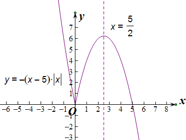解:∵函数y=-(x-5)|x|=$\left\{\begin{array}{l}{-{x}^{2}+5x,x≥0}\\{{x}^{2}-5x,x<0}\end{array}\right.$