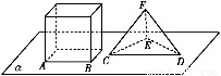 如图,正方体的底面与正四面体的底面在同一平面α上,且AB∥CD,正方体的六个面所在的平面与直线CE,EF相交的平面个数分别记为m,n,那么m+n=( )
