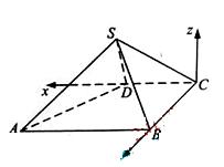 以C为坐标原点,射线CD为x轴正半轴,建立如图所示的直角坐标系C-xyz,设D(1,0,0),则A(2,2,0),B(0,2,0)。