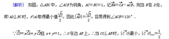 在△ABC中,∠ACB为钝角,AC=BC=1,且x+y=1,函数f(m)=