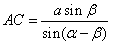| 解:如图,选择水平基线BC,在BC的延长线上取一点D, 在D点测得仰角∠BDA=β,同时测得CD的长度为a, 在△ADC中,∠DAC=α-β, 由正弦定理得 所以 在Rt△ACB中 ,AB=AC·sinα= |