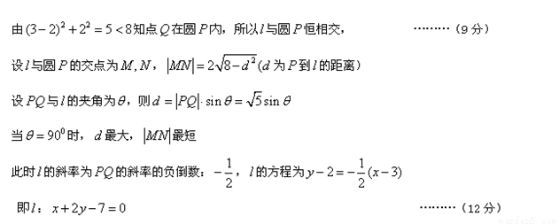 的外接圆恒相交,并求出相交的弦长最短时的直线