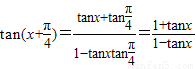 【答案】分析:(I)根据两角和的正切公式,把所给的等式的右边展开,利用特殊角的三角函数最后得到和右边的式子相等,等式得证.