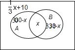 5.某网站向500名网民调查对A、B两种事件的态度,赞成A的人数是全体的五分之三,其余的不赞成,赞成B的比赞成A的多30人,其余的不赞成;另外对A、B都不赞成的网民数比对A、B都赞成的网民数的三分之一多10人.问对A、B都赞成的网民和都不赞成的网民各有多少人?分析 赞成A的人数300,赞成B的人数为330,设对A、B都赞成的人数为x,则对A、B都不赞成的人数$\frac{1}{3}$x+10,结合韦恩图求解即可.
