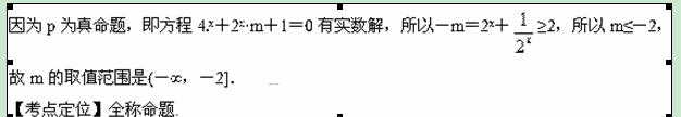 已知命题p:“∀x∈R,∃m∈R,使4x+2x·m+1=0”.若命题p为真命题,则实数m的取值范围是