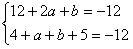 函数f(x)=4x3+ax2+bx+5的图像在x=1处的切线方程为y=-12x,