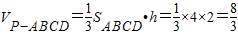 四棱锥P-ABCD的底面是边长为2的正方形,其面积SABCD=2×2=4,高h=2,