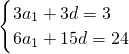 已知等差数列{an}的前3项和为3,前6项和为24.