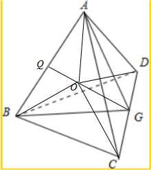 由对称性可知,四面体ABCD外接球的球心O在GQ上,