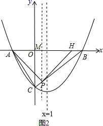 (2)若两动点M,H分别从点A,B以每秒1个单位长度的速度沿x轴同时出发相向而行,当点M到达原点时,点H立刻掉头并以每秒$\frac{3}{2}$个单位长度的速度向点B方向移动,当点M到达抛物线的对称轴时,两点停止运动,经过点M的直线l⊥x轴,交AC或BC于点P,设点M的运动时间为t秒(t>0).求点M的运动时间t与△APH的面积S的函数关系式,并求出S的最大值.