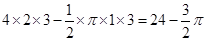 试题分析:由三视图可知,该几何体是有长方体里面挖了一个半圆柱体,可知,长方体的长为4,宽为3,高为2,那么圆柱体的高位3,底面的半径为1,则可知该几何体的体积为