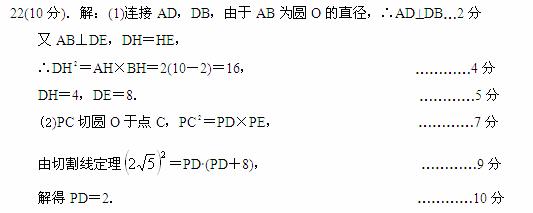 如图,圆O的直径AB=10,弦DE⊥AB于点H,AH=2.