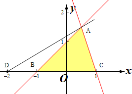 由$\left\{\begin{array}{l}{x-y+1=0}\\{3x+y-3=0}\end{array}\right.$得$\left\{\begin{array}{l}{x=\frac{1}{2}}\\{y=\frac{3}{2}}\end{array}\right.$,即A($\frac{1}{2}$,$\frac{3}{2}$),