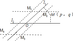 ②若p=0,q=1,则“距离坐标”为(0,1)的点有且仅有2个,过直线l1的一点M作l2的平行线且到直线l2的距离等于1,则满足条件的点M有且仅有2个,正确;