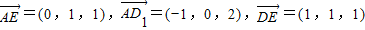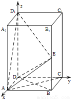(Ⅱ)解:如图建立空间直角坐标系Dxyz,则A(1,0,0),D1(0,0,2),E(1,1,1),B(1,1,0),