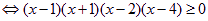 ,各因式根依次为-1,1,2,4,在数轴上标根如下: