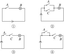 下列四个电路中,“开关A闭合”是“灯泡B亮”的必要不充分条件的电路有__________(把正确序号都填上).
