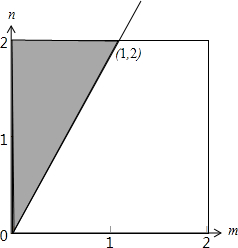 解:如下图所示:试验的全部结果所构成的区域为{(m,n)|0≤m≤2,0≤n≤2}(图中矩形所示).其面积为4.