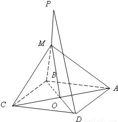 【答案】分析:欲证 PD∥平面MAC,根据直线与平面平行的判定定理可知只需证PD与平面MAC内一直线平行即可,连接AC、BD交点为O,连接MO,则MO为△BDP的中位线,则PD∥MO,而PD?平面MAC,MO?平面MAC,满足定理所需条件.