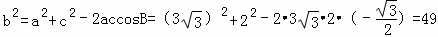 此题的关键是利用余弦定理建立已知与未知的关系,从而列出关于b的方程.要求学生熟练掌握余弦定理及三角形的面积公式,牢记特殊角的三角函数值.
