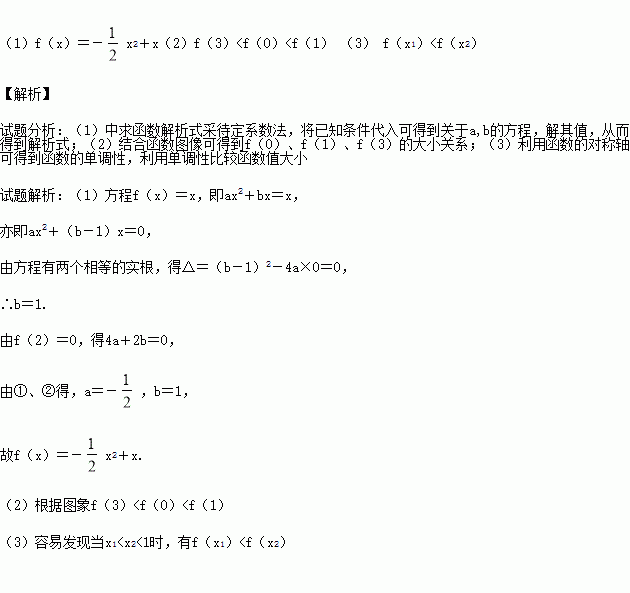 已知二次函数f(x)=ax2+bx(a、b是常数,且a≠0)满足条件:f(2)=0,且方程f(x)=x有两个相等实根.