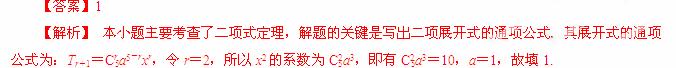 (a+x)5展开式中x2的系数为10,则实数a的值为________.