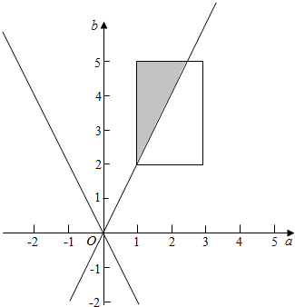 在1≤a≤3,2≤b≤5前提下,区域不等式组表示的区域面积为$\frac{1}{2}×3×(\frac{5}{2}-1)=\frac{9}{4}$,