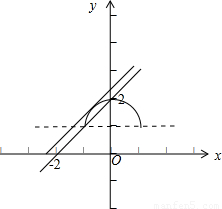 【答案】分析:曲线表示以C(0,1)为圆心、半径等于1的半圆,当直线y=x+b过点(0,2)时,可得b=2,满足条件.当直线y=x+b和半圆相切时,由1=