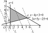 作一组与l0:2x+y=0平行的直线l:2x+y=t.t∈R可知:当l在l0的右上方时,直线l上的点(x,y)满足2x+y>0,即t>0,而且直线l往右平移时,t随之增大,在经过不等式组所表示的公共区域内的点且平行于l的直线中,以经过点A(5,2)的直线l2所对应的t最大,以经过点B(1,1)的直线l1所对应的t最小.所以zmax=2×5+2=12,zmin=2×1+1=3.