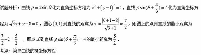 (坐标系与参数方程选做题)在极坐标系(ρ,θ)(ρ>0,0≤θ<