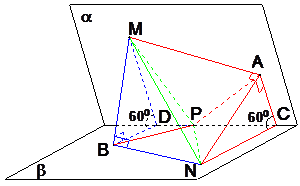 为60°的二面角,等腰直角三角形MPN的直角顶点P在l上,M∈α,N∈β,且MP与β所成的角等于NP与α所成的角.