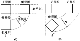 图中是两个相同的正方体,阴影面选为正面,正方体棱长为1,分别画出它们的三视图。