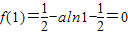 曲线y=f(x)在点(1,f(1))处的切线方程x+y-1=0…(3分)