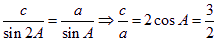 在△ABC中,已知角A、B、C对应的边分别为a、b、c,.且 C=2A.cos A=![]()