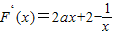 ∴F(x)=f(x)-g(x)=ax2+2x+1-lnx,