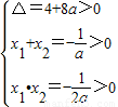 ∴方程2ax2+2x-1=0有两个不相等的正根,