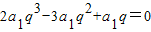 又a1≠0,q≠0,故2q2-3q+1=0⇒(2q-1)(q-1)=0,解得q=1或